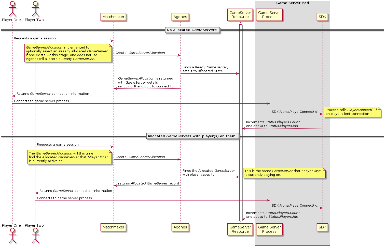 allocated, with room for n number of players, and if one is not available, allocate me a Ready GameServer”.